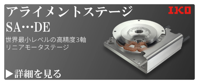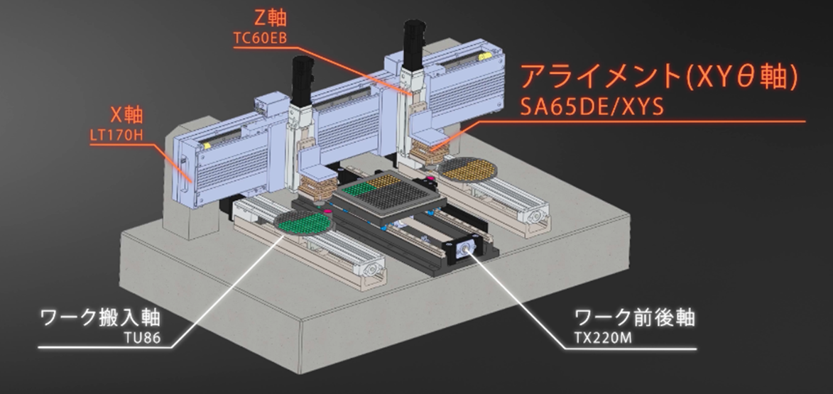 本件では、アライメント機構としてXYθ軸の3軸構成が必要でしたが、設置スペースに限りがあり、コンパクトなアクチュエータのご要望がありました。これ対してSA…DEは、XYθの3軸構成が標準で用意しているため、簡単に構成することができます。