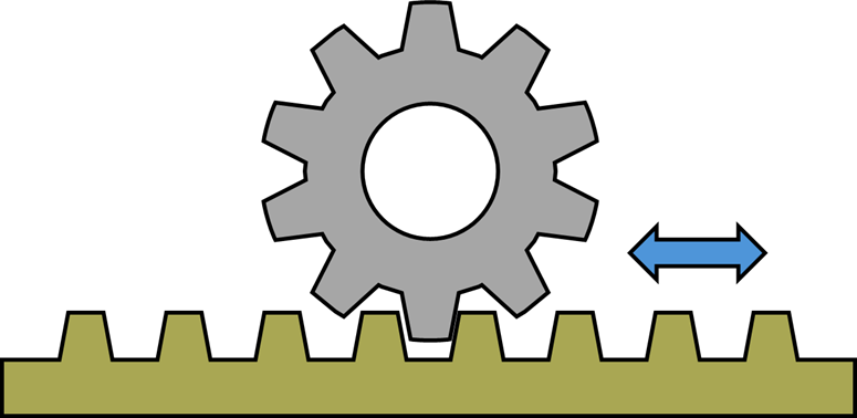 直線運動する「ラック (歯が付いた棒) 」と、それに噛み合う「ピニオンギア (歯車) 」を利用して、直線運動を回転運動に変換する、またはその逆を行うための仕組みです。最も広く用いられる方式の一つで、大きなトルクと滑らかな動作が得られやすいのが特長です。