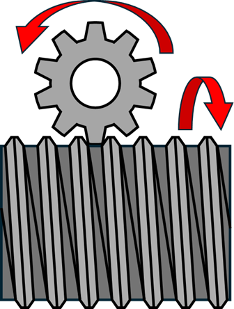 「ウォーム(螺旋状の部品)」と「ウォームホイール(歯車)」で構成されており、ウォームの回転をウォームホイールの回転運動へ変換する仕組みを持ちます。比較的細かな角度設定が可能で、複雑な動作を実現出来ます。