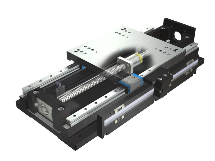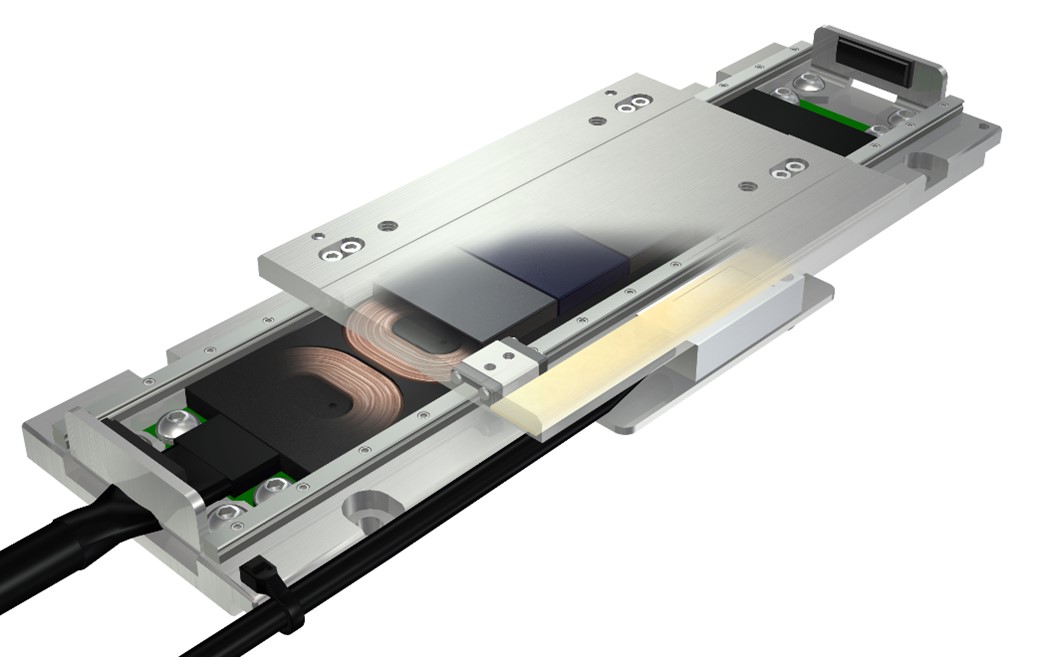 IKOのナノリニアNT…Vは、nmレベルの精度を要求する最も高精度な用途向けに設計されたリニアモータ駆動タイプのテーブルです。上述のボールねじ駆動の位置決めテーブルとは異なり、コイルとネオジム磁石の電磁力で直接直線運動を生むため、ギアやねじのような噛み合いがないため、伝達機構由来のバックラッシはありません。ただし、内部の直動案内機器に起因してわずかなバックラッシが存在しますが、リニアエンコーダのフィードバック制御によってその影響はほぼ完全に補償され、高精度な位置決めを実現します。また高性能ネオジム磁石の採用により、大きな推力が得られるため、極めて小形でありながら高速・高応答も可能な位置決めテーブルです。